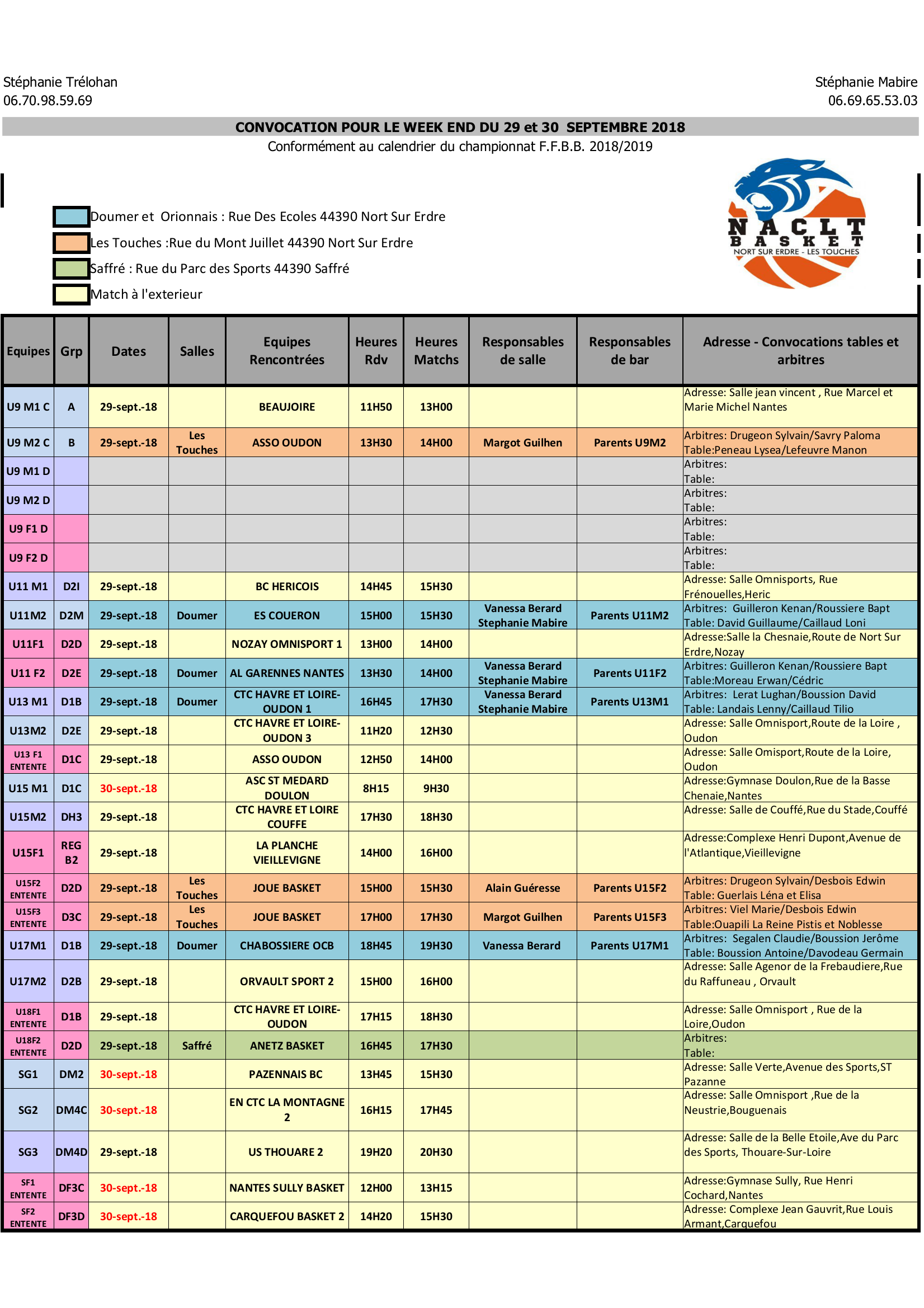 nacltbasketJournée de championnat du 29 et 30 septembre 2018|