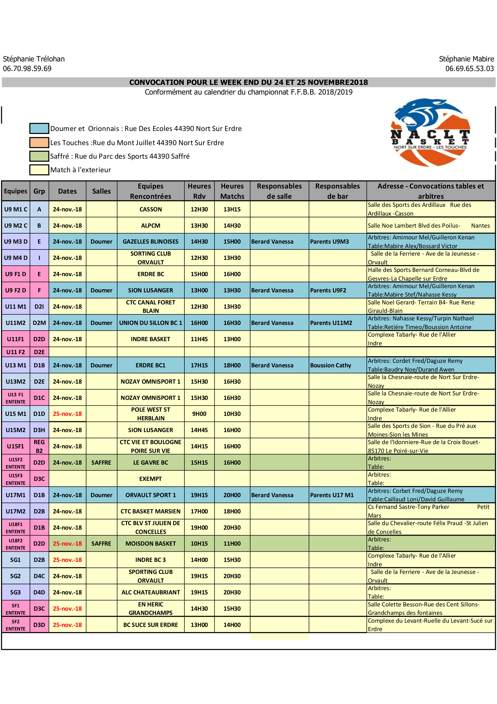 Planning du 24 et 25 novembre 2018 20/11/201820/11/2018| nacltbasketPlanning du 24 et 25 novembre 2018| 0 Comment| 18:09 Categories : Articles Post navigation Previous page Older Posts Planning du 17 et 18 novembre 2018Next page Newer Posts Planning du 1er et 2 décembre 2018 Related Post Résultats du 16 et 17 novembre 2019 18/11/2019 18/11/2019 nacltbasket Résultats du 16 et 17 novembre 2019 0 Comments 08:00 Les résultats de la 7e journée de championnat sont sortis ! Et nos équipes continuent leurs [...] Read MoreRead More Sport de filles 09/12/2020 09/12/2020 nacltbasket Sport de filles 0 Comments 19:49 Retour de votre « qui est-ce ? » Une équipe de filles aux maillots hétéroclites. [...] Read MoreRead More Une première 07/02/2022 07/02/2022 nacltbasket Une première 0 Comments 12:14 Premier match et première victoire en région pour nos U13F ! L’équipe de la CTC [...] Read MoreRead More